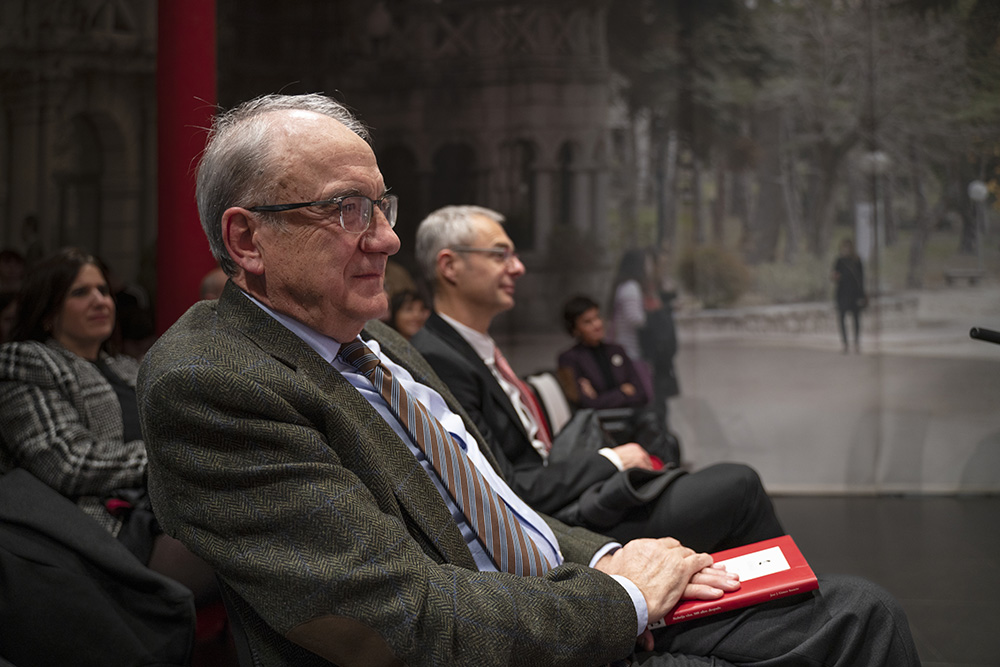 Antes de visitar los paneles, las vitrinas y los audiovisuales de la muestra, el presidente del Distrito de Hortaleza, David Pérez García, y el rector de la Universidad Nebrija, José Muñiz, acompañados por Gregorio Martinez, director de Relaciones Institucionales de la Universidad Nebrija y de la Fundación Nebrija, pronunciaron los discursos en la jornada inaugural.