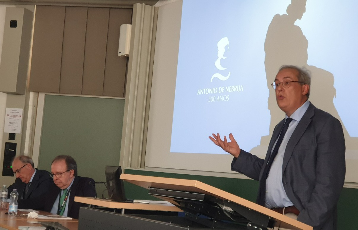 Diego Moldes, escritor, historiador de cine y profesor universitario, impartió la conferencia Significado y legado de Antonio de Nebrija, padre de la lingüística española. Con referencias al nacimiento del alfabeto, al origen judeoconverso del gramático o al valor de la educación y del humanismo en la actualidad, Moldes recordó que la Gramática de la lengua castellana (1492), de Nebrija, es la primera gramática en una lengua europea moderna: “Su legado fue y es de enorme influencia no solo en España sino también en Europa y América. Las gramáticas europeas y la preservación de las lenguas indígenas amerindias o precolombinas, deben mucho a Nebrija”.