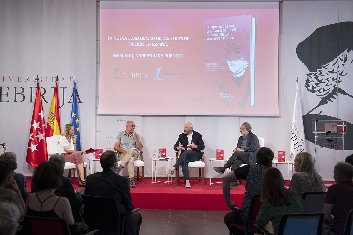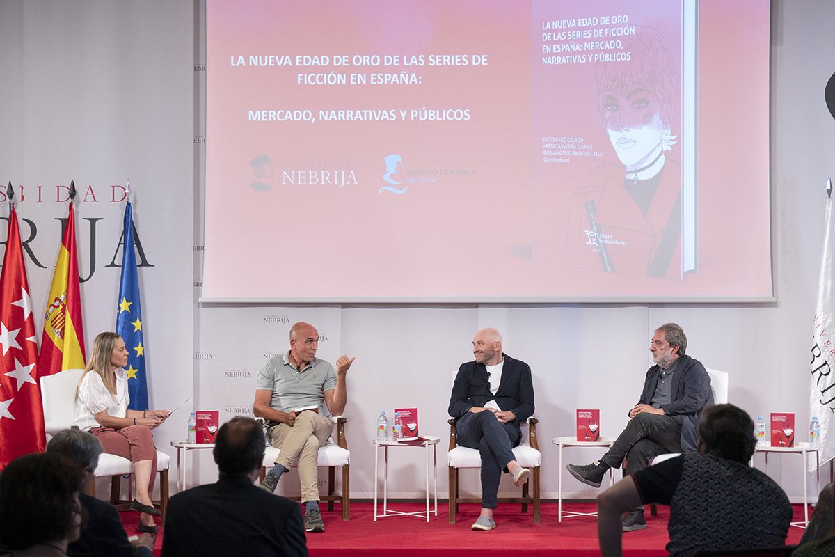 Muchas preguntas quedaron en el aire. En el veloz ritmo de las series españolas quizá falte algo de perspectiva temporal y más análisis. Sobre este último aspecto, Álvaro Bustinduy, vicerrector de Investigación de la Universidad Nebrija, elogió el libro La nueva edad de oro de las series de ficción en España como “una obra colectiva de gran interés científico e investigador”. Este reto, “que hay que seguir estudiando”, conecta con el nuevo programa de doctorado que pondrá en marcha la Facultad de Comunicación y Artes sobre la innovación que condiciona la evolución de los medios.